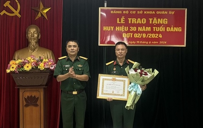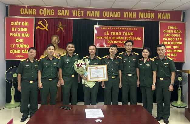 Sáng 16/8/2024, Đảng bộ Khoa Quân sự đã tổ chức Lễ trao tặng Huy hiệu 30 năm tuổi Đảng cho Thượng tá Lê Văn Cẩn – Bí thư Chi bộ, Phó Chủ nhiệm Bộ môn Nghệ thuật chiến dịch. Đến dự buổi Lễ có các đồng chí trong Đảng ủy, Chỉ huy Khoa cùng toàn thể đảng viên trong Đảng bộ.