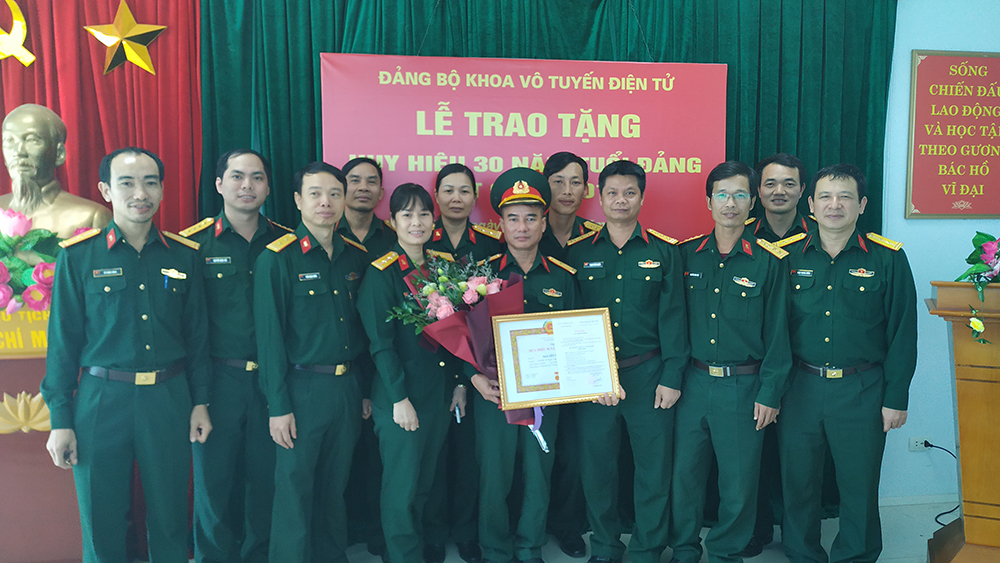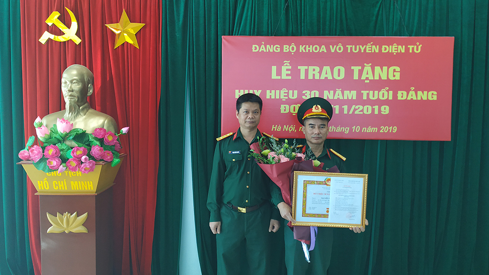 Thực hiện Quyết định Số 1080-QĐ/QUTW ngày 11/10/2019 của Thường vụ Quân ủy Trung ương về việc trao Huy hiệu 30 năm tuổi Đảng, chiều 29/10, Đảng bộ Khoa Vô tuyến Điện tử (VTĐT) đã tổ chức Lễ trao tặng Huy hiệu 30 năm tuổi Đảng cho Thiếu tá CN Nguyễn Văn Dân – đảng viên Xưởng Điện tử/Khoa VTĐT.