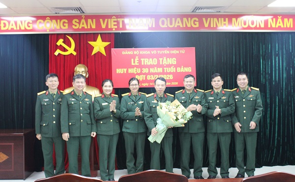 Hòa chung không khí thi đua sôi nổi của toàn Đảng, toàn dân, toàn quân lập thành tích chào mừng Đại hội đại biểu toàn quốc lần thứ XIV của Đảng, ngày 14/01/2026, Đảng bộ Khoa Vô tuyến Điện tử tổ chức Lễ trao tặng Huy hiệu 30 năm tuổi Đảng cho Thượng tá Trần Mạnh Hùng – Phó Chỉ huy trưởng Trung tâm Kỹ thuật viễn thông. Dự buổi Lễ có Đại tá Phạm Xuân Nghĩa – Bí thư Đảng ủy, Phó Chủ nhiệm Khoa Vô tuyến Điện tử cùng toàn thể đảng viên trong Đảng bộ Khoa.