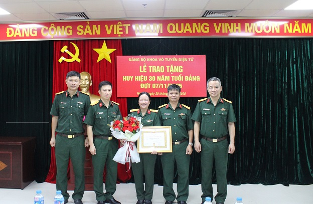 Trong không khí vui tươi, phấn khởi chào mừng 59 năm Ngày thành lập Học viện KTQS (28/10/1966-28/10/2025), sáng 29/10, Đảng bộ Khoa Vô tuyến Điện tử đã tổ chức Lễ trao tặng Huy hiệu 30 năm tuổi Đảng cho Thượng tá QNCN Nguyễn Thị Kim Anh – Kỹ thuật viên Bộ môn Lý thuyết mạch – đo lường. Tham dự buổi Lễ có Đại tá Phạm Xuân Nghĩa – Bí thư Đảng ủy, Phó Chủ nhiệm Khoa, cùng toàn thể đảng viên trong Đảng bộ.