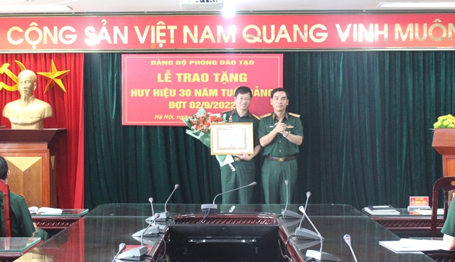 Trong không khí tưng bừng, phấn khởi toàn Đảng, toàn quân và toàn dân ta hăng hái thi đua lập thành tích chào mừng kỷ niệm 77 năm Ngày Cách mạng tháng Tám thành công (19/8/1945 – 19/8/2022) và Quốc khánh nước CHXHCN Việt Nam (02/9/1945 – 02/9/2022), sáng 19/8/2022, Đảng bộ Phòng Đào tạo đã long trọng tổ chức Lễ trao tặng Huy hiệu 30 năm tuổi Đảng cho Đại tá Hoàng Xuân Tĩnh – Bí thư Đảng ủy, Phó trưởng Phòng Đào tạo. Đến dự buổi Lễ có Thiếu tướng Lê Minh Thái – Uỷ viên Thường vụ Đảng ủy, Phó Giám đốc Học viện; các đồng chí trong Đảng ủy Phòng Đào tạo; đại diện Phòng Chính trị; cấp ủy, chi bộ, các tổ chức quần chúng và toàn thể đảng viên Chi bộ Kế hoạch & Quản lý đào tạo.