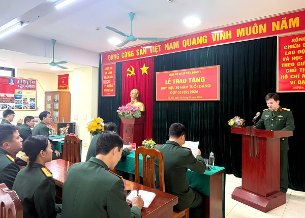 Buổi Lễ trao tặng Huy hiệu 30 năm tuổi Đảng diễn ra trong không khí trang trọng, ấm áp tình đồng chí, đồng đội, góp phần bồi đắp niềm tự hào, trách nhiệm của mỗi cán bộ, đảng viên trong Đảng bộ Tiểu đoàn 1 trong quá trình thực hiện nhiệm vụ.