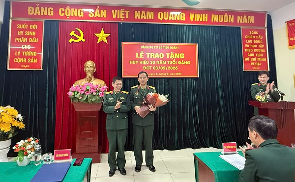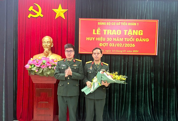 Trong không khí thi đua sôi nổi của toàn Đảng, toàn dân, toàn quân lập thành tích chào mừng Đại hội đại biểu toàn quốc lần thứ XIV của Đảng, sáng 14/01/2026, Đảng bộ Tiểu đoàn 1 long trọng tổ chức Lễ trao tặng Huy hiệu 30 năm tuổi Đảng cho Thượng tá Hoàng Đình Lâm – Phó Bí thư Đảng ủy, Tiểu đoàn trưởng Tiểu đoàn 1.