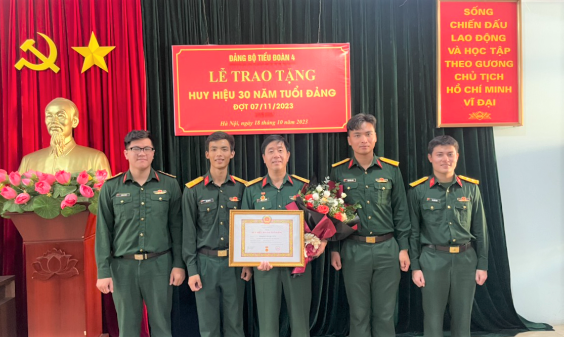 Ngày 18/10/2023, Đảng bộ Tiểu đoàn 4 đã tổ chức Lễ trao tặng Huy hiệu 30 năm tuổi Đảng cho Thượng tá Phạm Văn Quyền, hiện đang sinh hoạt tại Chi bộ 456B. Đến dự buổi Lễ có các đồng chí trong Đảng ủy, Ban chỉ huy Tiểu Đoàn, Bí thư các chi bộ trong Đảng bộ và toàn thể cán bộ, đảng viên trong Đảng ủy Tiểu đoàn 4.