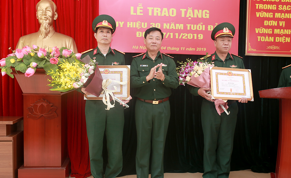 Thay mặt Đảng uỷ Học viện, Thiếu tướng Trần Tuấn Tú trao và gắn Huy hiệu 30 năm tuổi Đảng cho hai đồng chí, đồng thời phát biểu ghi nhận quá trình tu dưỡng, rèn luyện và những đóng góp tích cực của các đồng chí trong công tác xây dựng Đảng suốt 30 năm qua. Đó không chỉ là niềm vinh dự của riêng cá nhân hai đồng chí mà còn là niềm tự hào đối với toàn Đảng bộ Tiểu đoàn 4.