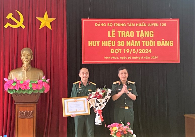 Chiều 03/5/2024, Đảng bộ Trung tâm Huấn luyện 125 đã long trọng tổ chức Lễ trao tặng Huy hiệu 30 năm tuổi Đảng cho Đại tá Nguyễn Việt Trung – Phó Trưởng Trung tâm Huấn luyện 125 Vĩnh Phúc. Tới dự buổi Lễ có Thiếu tướng Trần Văn Duy – Ủy viên Thường vụ Đảng ủy, Phó Chính ủy Học viện; các đồng chí trong Đảng ủy, Chỉ huy Trung tâm và 16 đồng chí đảng viên Chi bộ Xưởng Cơ điện.