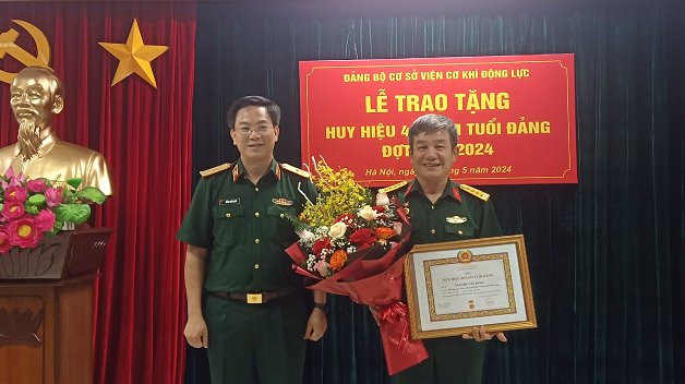 Trong không khí vui tươi, phấn khởi hướng đến chào mừng kỷ niệm 134 năm Ngày sinh Chủ tịch Hồ Chí Minh, vị lãnh tụ vĩ đại của dân tộc, người sáng lập Đảng Cộng sản Việt Nam (19/5/1890-19/5/2024), ngày 16/5, Đảng bộ Viện Cơ khí động lực đã long trọng tổ chức Lễ trao tặng Huy hiệu 40 năm tuổi Đảng cho Đại tá PGS. TS Nguyễn Văn Dũng – Nguyên Bí thư Đảng ủy, Chủ nhiệm Khoa Động lực (Viện Cơ khí động lực ngày nay). Đến dự buổi Lễ có Thiếu tướng Trần Xuân Nam – Ủy viên Ban Thường vụ Đảng ủy, Phó Giám đốc Học viện và toàn thể đảng viên của Đảng bộ Viện Cơ khí động lực.