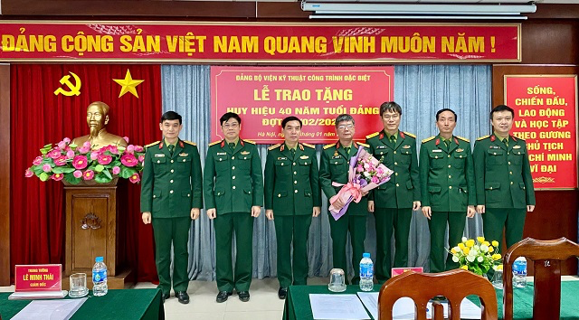 Căn cứ vào Quyết định số 3359- QĐ/QUTW của Quân uỷ Trung ương về việc tặng Huy hiệu Đảng, được sự uỷ quyền của Đảng uỷ Học viện KTQS, sáng 14/01/2025, Đảng bộ Viện Kỹ thuật công trình đặc biệt (KTCTĐB) đã tổ chức Lễ trao tặng Huy hiệu 40 năm tuổi Đảng cho Đại tá Bùi Đức Năng, đảng viên đang sinh hoạt tại Chi bộ Bộ môn Xây dựng Nhà và Công trình công nghiệp.