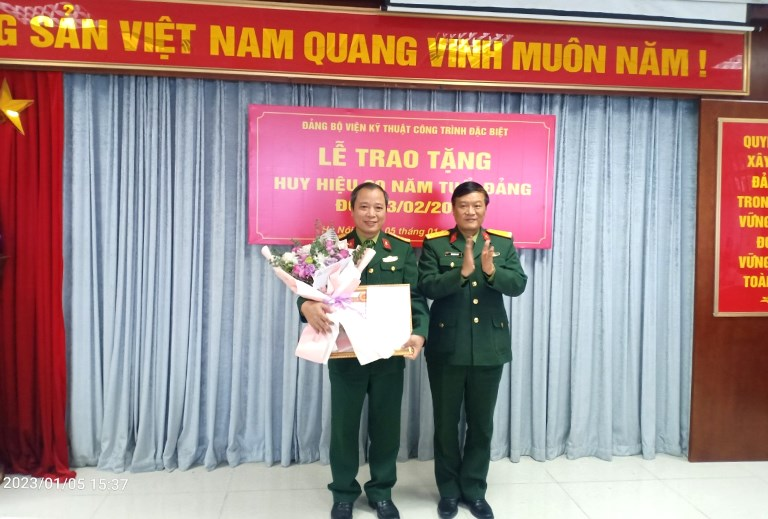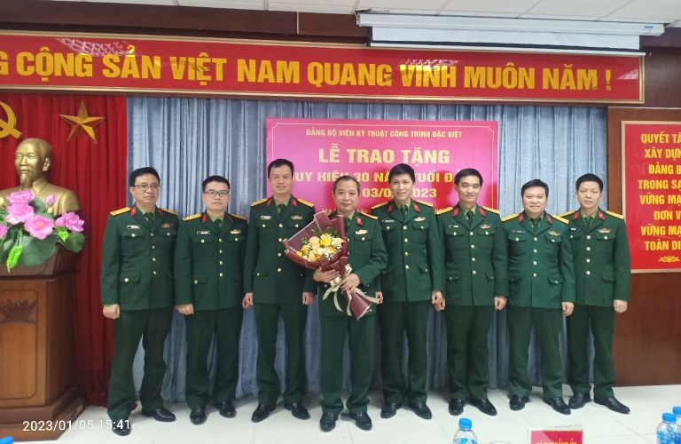 Chiều 05/01/2023, Đảng bộ Viện Kỹ thuật Công trình đặc biệt đã long trọng tổ chức Lễ trao tặng Huy hiệu 30 năm tuổi Đảng cho Đại tá PGS. TS Vũ Ngọc Quang – Phó Bí thư Đảng ủy, Q. Viện trưởng Viện Viện Kỹ thuật Công trình đặc biệt (KTCTĐB). Tới dự buổi Lễ có Đại tá Mai Quang Huy – Ủy viên Thường vụ Đảng ủy, Phó Giám đốc Học viện cùng toàn thể các đảng viên trong Đảng bộ.