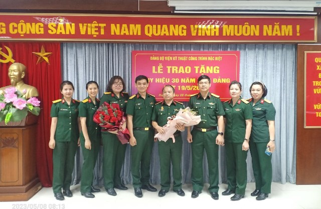 Ngày 08/5/2023, Đảng bộ Viện Kỹ thuật Công trình đặc biệt (KTCTĐB) đã long trọng tổ chức Lễ trao tặng Huy hiệu 30 năm tuổi Đảng cho Thượng tá Phạm Văn Chiên – Đảng viên Chi bộ Phòng Kế hoạch tổng hợp. Đến dự buổi Lễ có Thượng tá Nguyễn Văn Tú – Bí thư Đảng ủy, Phó Viện trưởng Viện KTCTĐB; Đại tá Vũ Ngọc Quang – Phó Bí thư Đảng ủy, Q. Viện trưởng Viện KTCTĐB cùng toàn thể đảng viên trong Đảng Bộ Viện KTCTĐB.