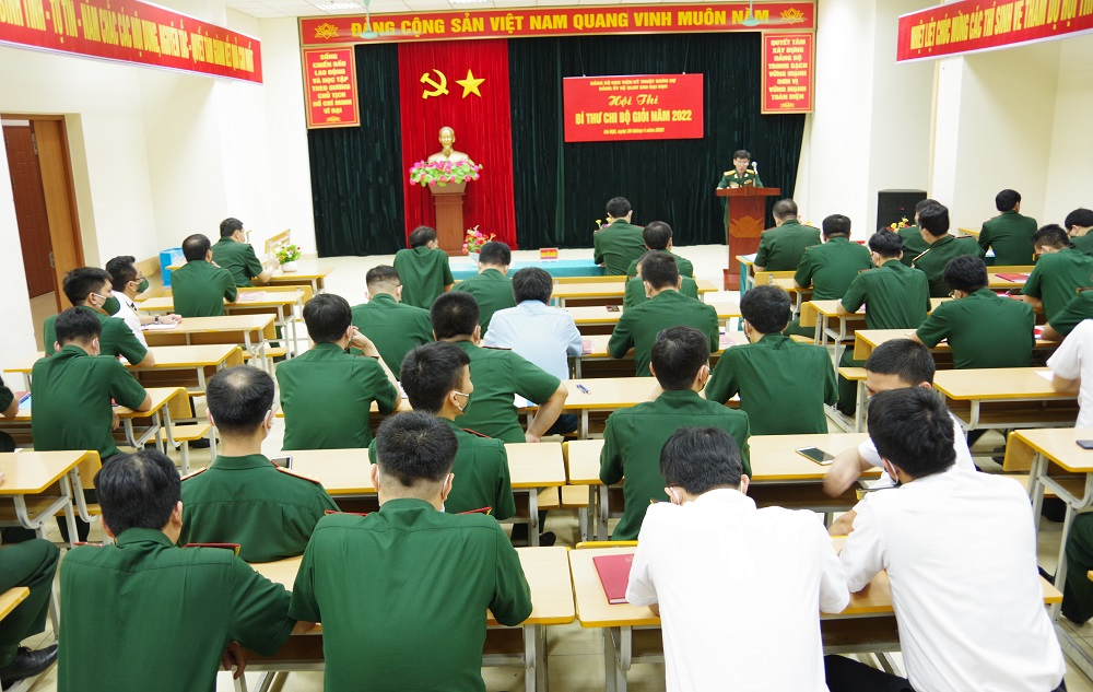Thực hiện Kế hoạch số 57/KH-CT ngày 16/02/2022 của Phòng Chính trị về tổ chức Hội thi Bí thư Đảng ủy, Bí thư Chi bộ giỏi năm 2022 và Kế hoạch số 309/KH-ĐU ngày 30/3/2022 của Đảng ủy Hệ Quản lý học viên Sau đại học (QLHVSĐH), tối 20/4/2022, tại hội trường 303 nhà C1, Đảng ủy QLHVSĐH đã tổ chức khai mạc Hội thi Bí thư Chi bộ giỏi cấp cơ sở năm 2022. Đại tá Nguyễn Tiến Dũng – Bí thư Đảng ủy, Chính trị viên Hệ, Trưởng Ban tổ chức Hội thi chủ trì và phát biểu khai mạc.