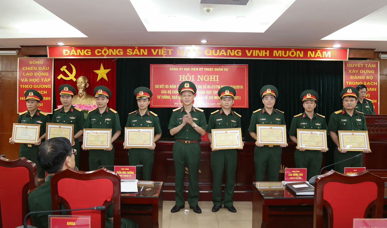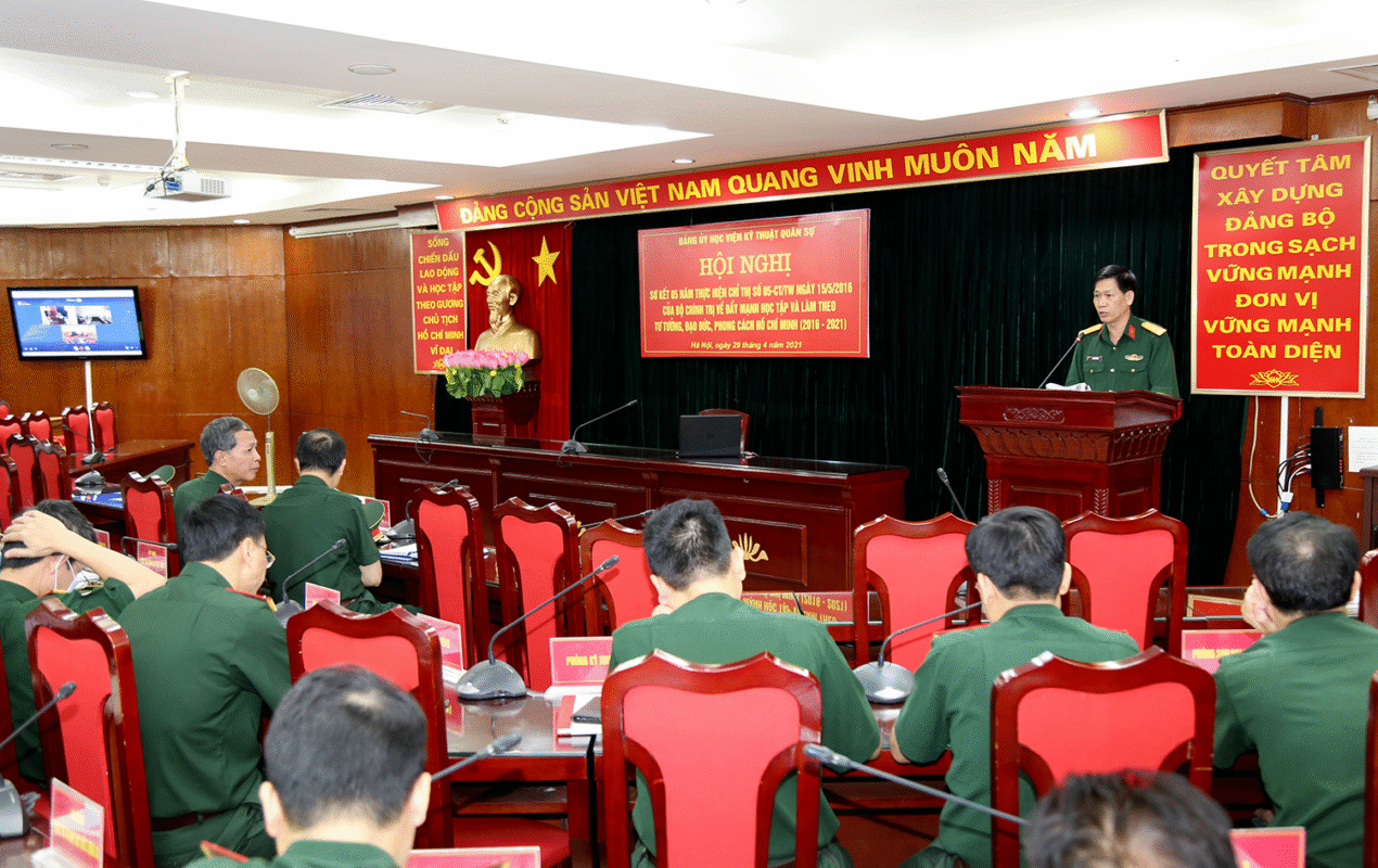 Sáng 29/4/2021, tại Phòng Hội thảo tầng 2-S4, Đảng ủy Học viện KTQS đã tổ chức Hội nghị sơ kết 05 năm thực hiện Chỉ thị số 05-CT/TW của Bộ Chính trị về đẩy mạnh học tập và làm theo tư tưởng, đạo đức, phong cách Hồ Chí Minh (2016-2021). Thiếu tướng Cao Minh Tiến – Bí thư Đảng ủy, Chính ủy Học viện chủ trì Hội nghị. Tham dự Hội nghị có các đồng chí trong Đảng ủy, Ban Giám đốc Học viện; bí thư cấp ủy các đơn vị đầu mối trực thuộc Học viện và các tập thể tiêu biểu, xuất sắc trong thực hiện Chỉ thị 05.