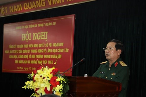 Tại Hội nghị, Thiếu tướng Nguyễn Lạc Hồng – Ủy viên Ban Thường vụ, Phó Giám đốc Học viện đã trình bày Báo cáo tổng kết 10 năm thực hiện Nghị quyết số 791-NQ/QUTW về “Lãnh đạo công tác KHCN&MT trong Quân đội đến năm 2020 và những năm tiếp theo”.