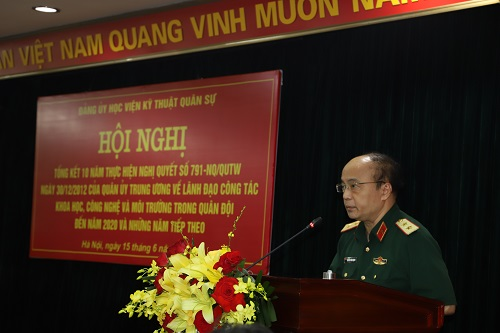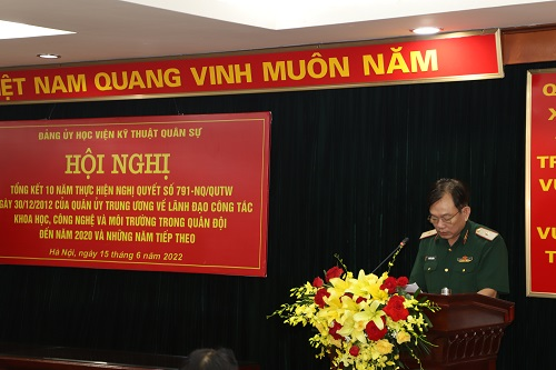 Ngày 15/6/2022, tại Phòng hội thảo, nhà S4, Đảng ủy Học viện đã tổ chức Hội nghị Tổng kết 10 năm thực hiện Nghị quyết số 791-NQ/QUTW ngày 30/12/2012 của Quân ủy Trung ương về “Lãnh đạo công tác KHCN&MT trong Quân đội đến năm 2020 và những năm tiếp theo”. Thượng tướng Lê Huy Vịnh – Ủy viên Trung ương Đảng, Ủy viên Quân ủy Trung ương, Thứ trưởng Bộ Quốc phòng dự và chỉ đạo Hội nghị; Trung tướng Nguyễn Công Định – Phó Bí thư Đảng ủy, Giám đốc Học viện chủ trì Hội nghị.