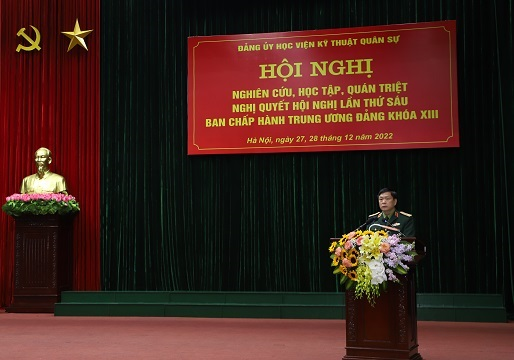 Trong hai ngày 27 và 28/12/2022, Đảng ủy Học viện KTQS đã tổ chức Hội nghị học tập, quán triệt Nghị quyết Hội nghị lần thứ Sáu Ban Chấp hành Trung ương Đảng (khóa XIII) cho cán bộ, đảng viên trong Học viện. Đến dự, chỉ đạo và trực tiếp báo cáo chuyên đề có Thiếu tướng Trần Văn Thưởng – Bí thư Đảng ủy, Chính ủy Học viện; tham gia lớp học có trên 1.300 cán bộ, đảng viên trong toàn Học viện.