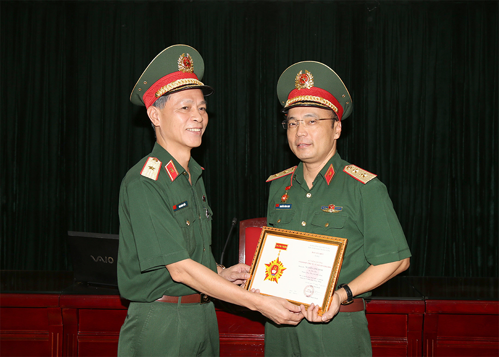 Nhân dịp kỷ niệm 89 năm Ngày truyền thống Ngành tổ chức xây dựng Đảng (14/10/1930 – 14/10/2019), tại Hội nghị Giao ban Chính trị tháng 9/2019, với sự có mặt đông đủ của các đồng chí trong Đảng ủy, Ban Giám đốc Học viện; Chỉ huy trưởng, Bí thư cấp ủy các đơn vị đầu mối trực thuộc Học viện; các đồng chí trưởng ban, bộ phận/Phòng Chính trị; các đồng chí chủ nhiệm bộ môn Khoa Mác-Lênin, tư tưởng Hồ Chí Minh, Khoa CTĐ, CTCT; được sự uỷ quyền của cấp trên, thay mặt Đảng ủy, Ban Giám đốc Học viện, Thiếu tướng Cao Minh Tiến – Bí thư Đảng ủy, Chính ủy Học viện đã trao Kỷ niệm chương “Vì sự nghiệp công tác tổ chức xây dựng Đảng” cho Trung tướng Nguyễn Công Định – Phó Bí thư Đảng uỷ, Giám đốc Học viện.