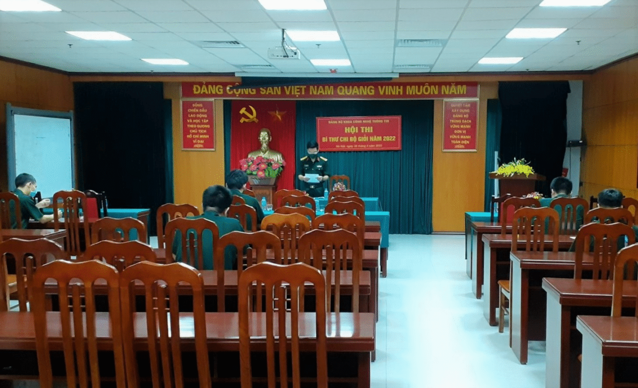 Thực hiện Kế hoạch số 57/KH-CT ngày 16/02/2022 của Phòng Chính trị về việc tổ chức Hội thi Bí thư Đảng ủy, Bí thư Chi bộ giỏi năm 2022, sáng 28/4/2022, tại phòng 1916 – S1, Đảng ủy Khoa Công nghệ thông tin đã tổ chức Hội thi Bí thư Chi bộ giỏi cấp cơ sở năm 2022. Đến dự và chỉ đạo Hội thi có Trung tá Tạ Minh Thanh – Bí thư Đảng ủy, Phó Chủ nhiệm Khoa, Trưởng Ban tổ chức Hội thi. Tham dự khai mạc Hội thi còn có các đồng chí trong Đảng ủy, chỉ huy Khoa; Ban tổ chức; Ban giám khảo và 08 thí sinh là bí thư chi bộ của các đơn vị trực thuộc.