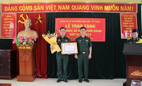 Ngày 21/8, Đảng ủy Phòng Hậu cần – Kỹ thuật trang trọng tổ chức lễ trao tặng Huy hiệu 30 năm tuổi Đảng, đợt 02/9/2023 cho Thượng tá Ngô Việt Phương – Bí thư Chi bộ, Chủ nhiệm Quân y. Tới dự buổi lễ có các đồng chí trong Đảng ủy, chỉ huy Phòng Hậu cần – Kỹ thuật, Bí thư các chi bộ trong Đảng ủy, đại diện các tổ chức quần chúng và đảng viên của Chi bộ Ban Quân y.