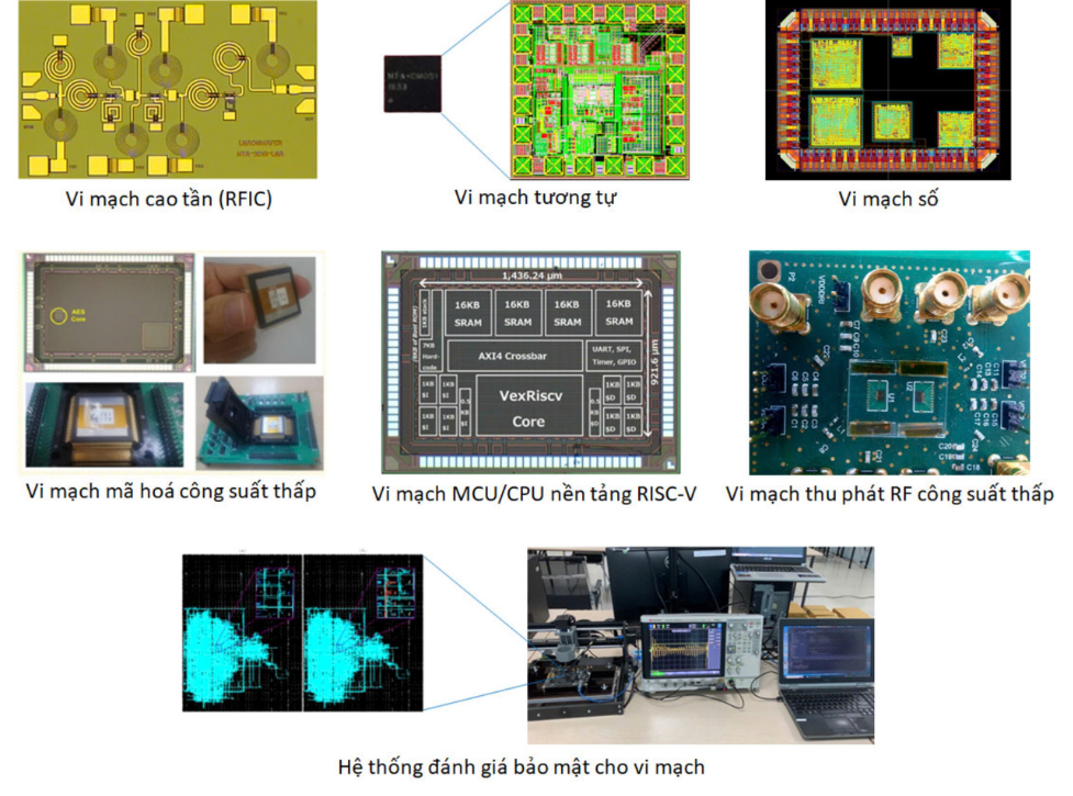 Thông qua các hoạt động hợp tác này, Viện đã làm chủ thiết kế nhiều vi mạch tiên tiến như vi mạch bộ khuếch đại tạp âm thấp (LNA) băng tần X, vi mạch mã hóa AES-128, vi mạch thu phát vô tuyến công suất thấp, vi mạch ổn áp (LDO), thiết kế lõi vi xử lý cơ bản trên nền tảng kiến trúc RISC-V và bộ mẫu thiết bị phát hiện Trojan phần cứng trong vi mạch chuyên dụng.