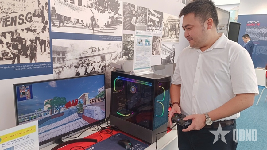 Khách tham quan trải nghiệm sản phẩm mô phỏng ảo 3D Học viện KTQS