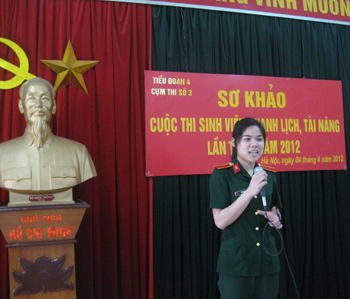 Để thiết thực chào mừng kỷ niệm 37 năm ngày Giải phóng hoàn toàn miền Nam, thống nhất đất nước (30/4/1975 – 30/4/2012) và chào mừng Đại hội đoàn các cấp tiến tới Đại hội Đoàn toàn quốc lần thứ X, ngày 04/4, ĐCS Tiểu đoàn 4 đã tổ chức vòng sơ khảo cuộc thi “Sinh viên thanh lịch, tài năng” cấp cơ sở lần thứ I. Đến dự cuộc thi có Đại úy Đỗ Ngọc Thanh – Trưởng Ban Thanh niên/Phòng Chính trị và đặc biệt là sự tham gia của 41 thí sinh đến từ các tổ chức ĐCS Tiểu đoàn 4, Tiểu đoàn 1, V2, K23. Đây là các sinh viên tiêu biểu đã được lựa chọn từ các tổ chức đoàn, có kết quả học tập và rèn luyện tốt.