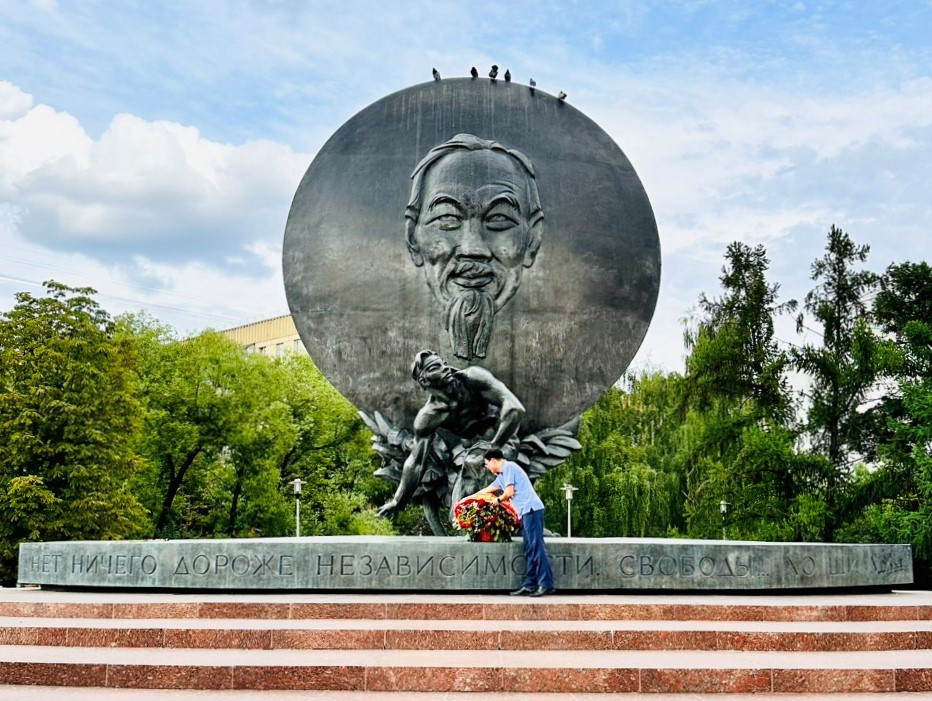 Tiếp đó, vào ngày 9/7/2023, Đoàn công tác của Học viện cũng đã đến dâng hoa tại tượng đài Chủ tịch Hồ Chí Minh ở Quảng trường mang tên Bác tại Mát-xcơ-va – Thủ đô của Liên bang Nga.