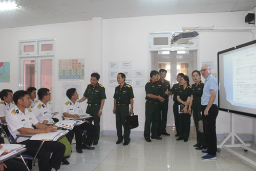 Sau khi xem phim giới thiệu về Nhà trường, Đoàn Công tác đã được nghe Đại tá Nguyễn Xuân Đường – Giám đốc Trung tâm Công nghệ thông tin và Ngoại ngữ chia sẻ kinh nghiệm, kết quả hợp tác với các đối tác Ấn Độ cũng như các nội dung hợp tác dự kiến triển khai trong thời gian tới. Các thành viên trong Đoàn đã có nhiều ý kiến trao đổi về cách thức khai thác đầu tư của các đối tác Ấn Độ về cơ sở vật chất, phần mềm, công tác đào tạo công nghệ thông tin, ngoại ngữ cũng như tìm hiểu tình hình Thông tin khoa học quân sự, hoạt động của Trung tâm Học liệu – Thư viện và Thư viện điện tử.