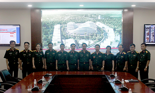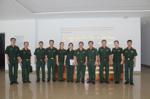 Đại tá Bùi Sơn Hà – Hiệu trưởng Trường SQTT chủ trì buổi tiếp đón và làm việc. Tham gia đón tiếp và làm việc với Đoàn còn có Đại tá Lê Xuân Hùng – Phó Hiệu trưởng cùng chỉ huy các cơ quan, đơn vị của Nhà trường: Phòng Khoa học Quân sự, Phòng Đào tạo, Khoa Công nghệ thông tin, Trung tâm Công nghệ thông tin và Ngoại ngữ.
