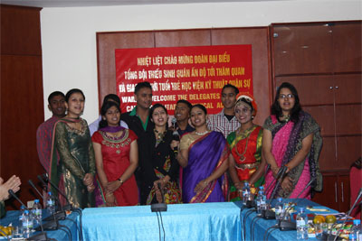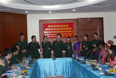 Mở đầu buổi giao lưu, bằng ca khúc “We are the world”, với sự thể hiện của các thành viên Câu lạc bộ tiếng Anh của Học viện và các bạn thiếu sinh quân Ấn Độ đã làm cho không khí buổi giao lưu thực sự sôi nổi, chân tình và thân mật. Với tinh thần hữu nghị, cởi mở và sôi nổi của tuổi trẻ, của tinh thần đoàn kết quốc tế, hai bên đã giới thiệu cho nhau về truyền thống, văn hóa, về chức năng nhiệm vụ và những nội dung hoạt động tiêu biểu của tổ chức, đơn vị mình. Trong chương trình, Đoàn cũng đã tham quan, nghe giới thiệu về hệ thống thư viện và khu nhà ở của học viên quân sự.