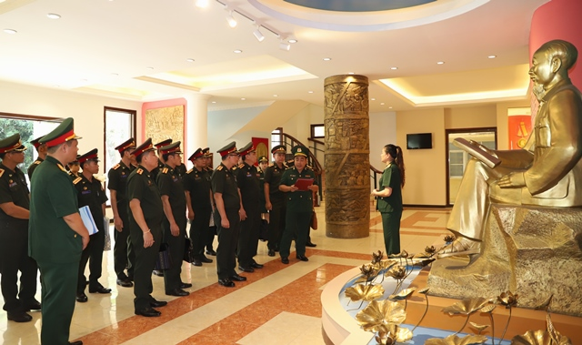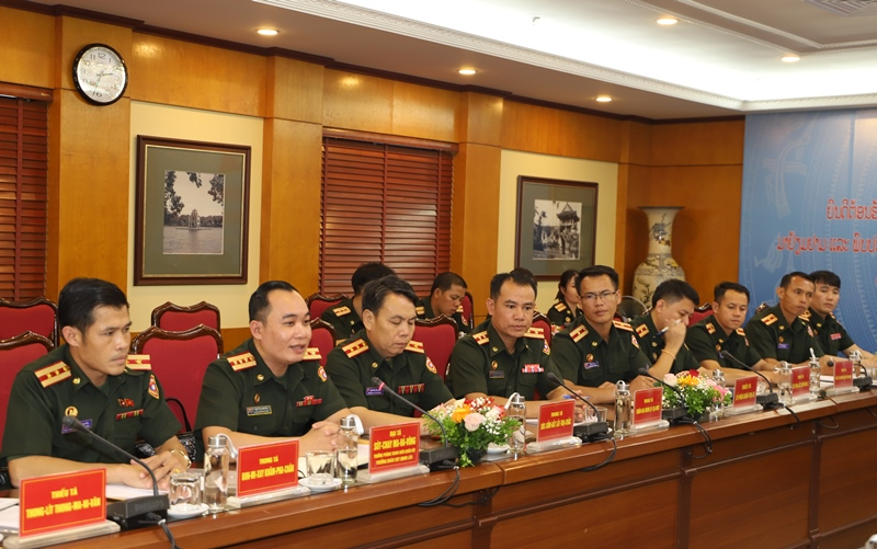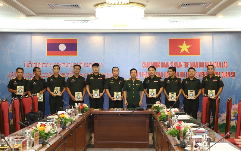 Kết thúc buổi giao lưu, trao đổi, Đoàn sĩ quan trẻ Quân đội nhân dân Lào và Đoàn sĩ quan trẻ Học viện KTQS thăm quan Nhà truyền thống Học viện, Hệ Quốc tế và đến thăm các đồng chí học viên Lào đang học tập tại Học viện.