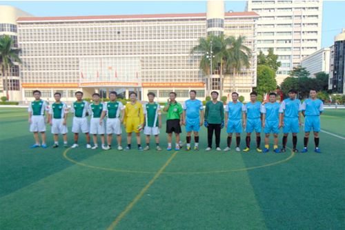 Đội bóng Khoa CHTMKT và Đội bóng Liên phòng trước giờ thi đấu