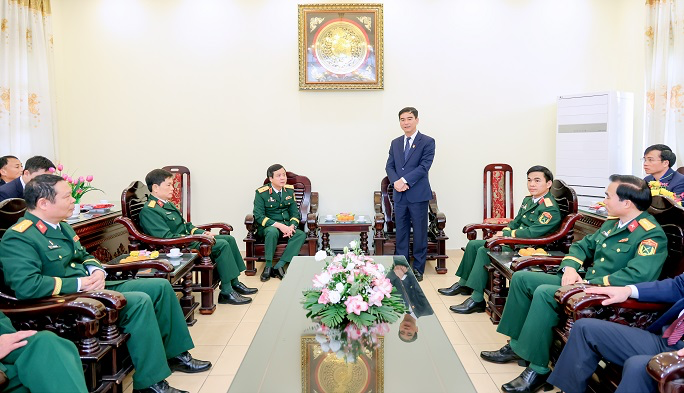 Thay mặt lãnh đạo, chính quyền và nhân dân tỉnh Vĩnh Phúc, đồng chí Ủy viên Trung ương Đảng, Bí thư Tỉnh ủy cảm ơn Học viện KTQS đã cùng các đơn vị Quân đội đóng quân trên địa bàn hỗ trợ, phối hợp tích cực nhằm đảm bảo quốc phòng, trật tự xã hội, giữ vững chính trị, là tiền đề để tỉnh nhà phát triển kinh tế – xã hội. Đồng chí chúc đơn vị tiếp tục phát huy truyền thống tốt đẹp của Quân đội, gặt hái được nhiều thành tích trong công tác giáo dục, đào tạo và nghiên cứu khoa học.