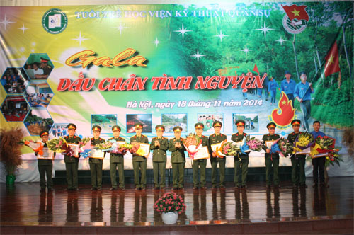 Trong những ngày này, toàn thể cán bộ, giáo viên, học viên, sinh viên trong Học viện ra sức thi đua lập thành tích chào mừng ngày Nhà giáo Việt Nam 20/11, hướng tới kỷ niệm 70 năm ngày thành lập Quân đội nhân dân Việt Nam và 25 năm Ngày hội Quốc phòng toàn dân. Thực hiện Hướng dẫn của Ban Thanh niên Quân đội và được sự nhất trí của Thủ trưởng Học viện, tối 18/11, tuổi trẻ Học viện KTQS tưng bừng tổ chức đêm Ga la “Dấu chân tình nguyện”. Đêm Gala nhằm đánh giá kết quả hoạt động, đồng thời biểu dương, khen thưởng những tập thể, cá nhân có thành tích tốt trong 15 năm tổ chức thực hiện phong trào Thanh niên tình nguyện (TNTN).