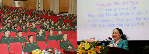 Tiếp theo, bà Nguyễn Thị Phi Nga – Chuyên gia cao cấp Học viện Doanh nhân châu Á, Chuyên gia tư vấn Hôn nhân – Gia đình, Nguyên Chủ nhiệm CLB Phụ nữ Thủ đô – Hội Liên hiệp Phụ nữ thành phố Hà Nội đã lên nói chuyện chuyên đề về Văn hóa ứng xử trong gia đình và xã hội.
