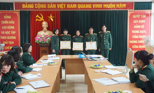 Trước khi tiến hành giao ban, đồng chí Trợ lý CĐ, PN đã đọc các quyết định khen thưởng của Tổng cục Chính trị cho các tập thể, cá nhân vì đã có thành tích xuất sắc trong công tác công đoàn, phụ nữ năm 2014. Thay mặt cho Ban CĐQP, Ban PNQĐ, Thượng tá Cao Trung Hà đã trao Bằng khen cho các tập thể và cá nhân.