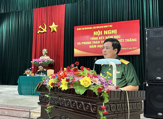 Tối 09/8, Hệ QLHV đào tạo VB2 hoàn thiện đại học ngành kỹ thuật (Hệ 1) đã tổ chức Hội nghị Tổng kết năm học và phong trào thi đua Quyết thắng năm học 2022-2023. Đại tá Trần Văn Duy – Ủy viên Thường vụ, Phó Chính ủy Học viện đến dự và chỉ đạo Hội nghị. Tham dự Hội nghị có đại diện một số cơ quan, đơn vị trong Học viện cùng toàn thể cán bộ, nhân viên, học viên Hệ 1.