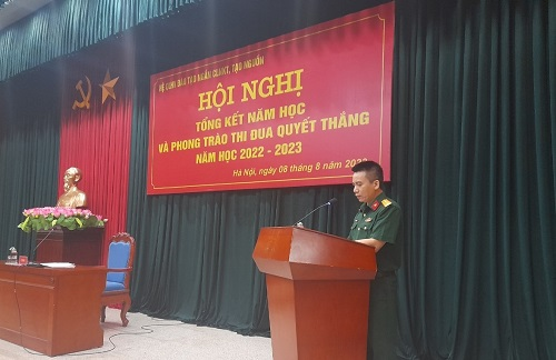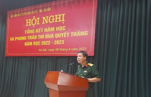 Tại Hội nghị, Đại tá Phạm Xuân Trung – Hệ trưởng đã trình bày Báo cáo Tổng kết năm học 2022-2023; Đại tá Ngô Minh Tiến – Bí thư Đảng ủy, Chính trị viên Hệ trình bày Báo cáo Tổng kết Phong trào thi đua Quyết thắng năm học 2022-2023.