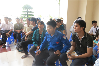 Thanh niên tình nguyện đón và chỉ dẫn cho thí sinh