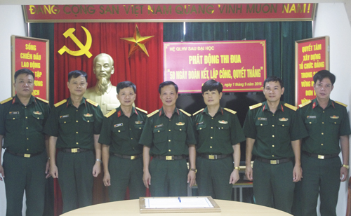 Hòa chung không khí thi đua sôi nổi của toàn Học viện thiết thực lập thành tích chào mừng kỷ niệm 71 năm ngày Quốc khánh 2/9 (2/9/1945 – 2/9/2016) và hướng tới kỷ niệm 50 năm ngày Truyền thống Học viện (28/10/1966 – 28/10/2016), sáng 01/9, Hệ Quản lý học viên Sau đại học phát động đợt thi đua cao điểm “50 ngày đoàn kết, lập công, quyết thắng” tới toàn thể cán bộ, học viên, nhân viên, chiến sĩ với nội dung và chỉ tiêu cụ thể như sau: