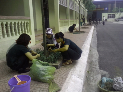 Mở đầu cho các hoạt động là buổi Lao động công ích tại khu vực Xuân Phương. Đúng 7 giờ 30 phút sáng nay (ngày 16/10), kế hoạch “Tôn tạo đất, quét vôi và trồng cây cảnh” xung quanh các hốc cây dọc mặt tiền của khu Xuân Phương đã được triển khai nhanh chóng. Không khí làm việc tấp nập, khẩn trương, rộn ràng, khí thế, các nhóm làm việc phối hợp với nhau rất nhịp nhàng: nhóm này tay cuốc, tay xẻng thoăn thoắt cuốc và xúc từng lớp đất cằn cỗi dưới các gốc cây đổ lên chiếc xe cải tiến (mượn được của người dân) chở đổ ra sân bãi, rồi lại thoăn thoắt cuốc và xúc từng xe đất màu tơi xốp từ sân bãi trở về đổ vào vun đắp cho từng gốc cây; nhóm kia tay rằm, tay chép tách từng nhành cây cảnh nhanh nhẹn trồng trên lớp đất màu tươi mới; nhóm kế tiếp lấy xô xách nước tưới đều lên các ô cây vừa được trồng xong; nhóm cuối cùng tay xô, tay chổi quét nước vôi phủ đều xung quanh từng gờ bao cây cảnh. Cứ như vậy, công trình của Công đoàn và Hội Phụ nữ cơ sở Trung tâm Công nghệ & Hệ QLHV Sau đại học được tiến hành một cách mau lẹ, nhanh chóng.