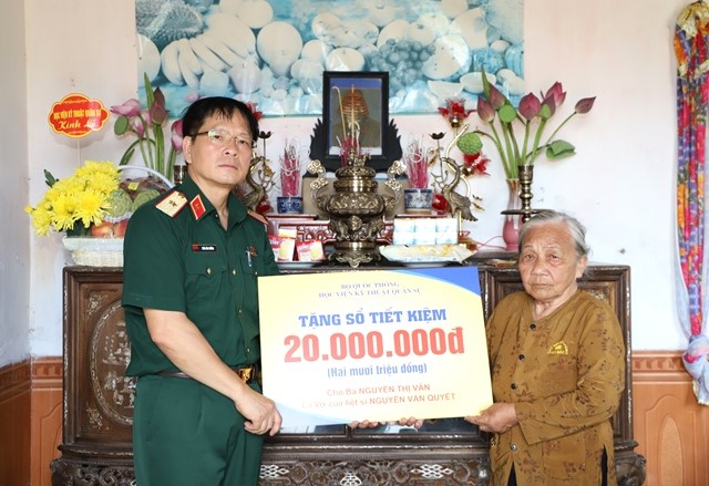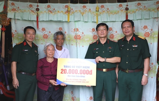 Tại đây, Thiếu tướng Trần Văn Thưởng đã trao tặng 02 sổ tiết kiệm với trị giá của mỗi sổ là 20.000.000 đồng tới gia đình: Bà Nguyễn Thị Vân (1938) – xã Hải Quang, huyện Hải Hậu, tỉnh Nam Định là vợ của liệt sĩ Nguyễn Văn Quyết, hy sinh năm 1972 tại chiến trường Quảng Trị và Bà Hoàng Thị Liễu (1939) – xã Hải Nam, huyện Hải Hậu, tỉnh Nam Định là vợ của liệt sĩ Phạm Văn Cát, hy sinh năm 1973 tại chiến trường thuộc tỉnh Gia Lai.