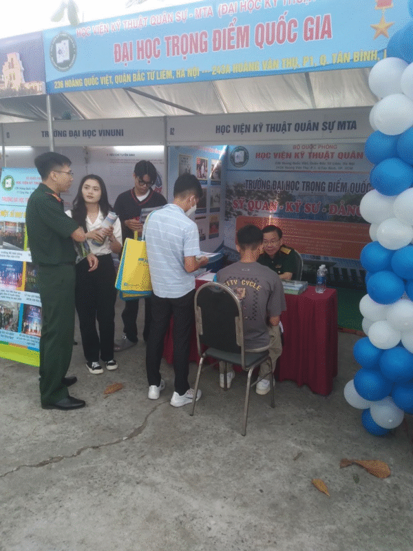 Với mong muốn nâng cao chất lượng nguồn tuyển đối tượng đào tạo kỹ sư quân sự đáp ứng yêu cầu phát triển quân đội trong tình hình mới, cũng như quảng bá, đưa hình ảnh của Học viện đến được đông đảo thí sinh và thân nhân thí sinh. Tại “Ngày hội tư vấn tuyển sinh – hướng nghiệp”, ngoài phát tờ rơi quảng bá thông tin về Học viện, các cán bộ của Học viện đã cung cấp cho các em học sinh thông tin tuyển sinh của Học viện trong năm 2023 như chỉ tiêu, phương thức tuyển sinh, hồ sơ sơ tuyển, điều kiện sức khỏe, lý lịch, phân chia nhóm trường Quân đội và định hướng ngành nghề đào tạo tại Học viện nhằm hỗ trợ các em về thủ tục, cũng như giúp các em xác định và đăng ký đúng nguyện vọng xét tuyển theo quy định của Bộ GD&ĐT và Bộ Quốc phòng.