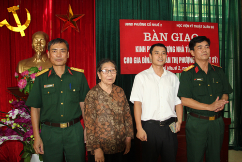 Đến dự buổi trao tặng, về phía Học viện có Đại tá Nguyễn Văn Tài – Phó Chủ nhiệm Chính trị cùng đại diện cơ quan Chính sách và Tuyên huấn. Về phía lãnh đạo, chính quyền địa phương có đồng chí Chu Văn Đoàn – Bí thư Đảng ủy, Chủ tịch UBND phường cùng các đồng chí trong Thường vụ Đảng ủy, HĐND, UBND phường Cổ Nhuế 2 và gia đình bà Trần Thị Phượng.