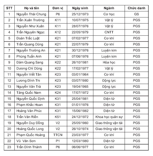 Dưới đây là danh sách các nhà giáo được bổ nhiệm chức danh GS, PGS năm 2017 (kèm theo QĐ số 1249/ QĐ-HV ngày 27/04/2018 của GĐ HV):