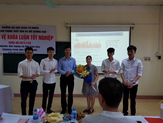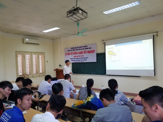 Sau 4 tháng dày công nghiên cứu, tìm hiểu qua các nguồn tài liệu khác nhau, nắm bắt thực tế ở các cơ quan chuyên môn khi về thực tập, lấy số liệu và áp dụng công nghệ thông tin trong việc tính toán, xử lý các mẫu biểu, thông số…, các học viên đã hoàn thành đồ án với đề tài trên nhiều lĩnh vực khác nhau như: Dự báo tầm nhìn xa trên biển Việt Nam khi có áp thấp nhiệt đới trên Biển Đông; Nghiên cứu ảnh hướng của độ đứt gió đến cất và hạ cánh máy bay; Ảnh hưởng của gió bề mặt tới hoạt động cất hạ cánh tại sân bay Nội Bài; Nghiên cứu cơ chế vật lí gây hạn tại Ninh Thuận; Nghiên cứu đánh giá sự xuất hiện của phơn tại khu vực Bắc Trung Bộ. Đồ án của 05 học viên đã tạo ấn tượng tốt, được Hội đồng chấm đồ án tốt nghiệp đánh giá cao về chất lượng và tính ứng dụng. Cả 05/05 đề tài đều được xếp loại Xuất sắc, trong đó có 04 đề tài đạt loại A+ , 01 đề tài đạt loại A.