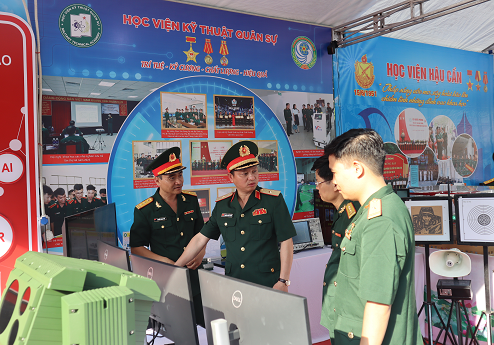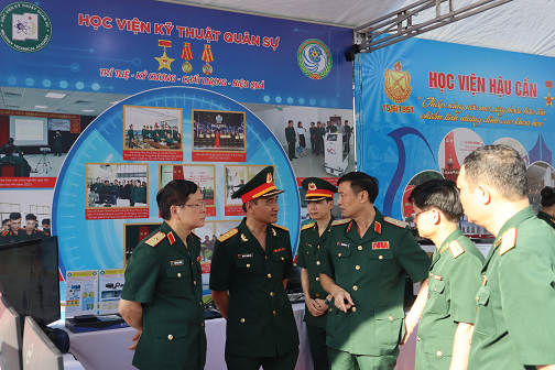 Thiếu tướng PGS. TS Ngô Văn Giao – Cục trưởng Cục Khoa học Quân sự/Bộ Quốc phòng tham quan gian hàng trưng bày triển lãm của Học viện