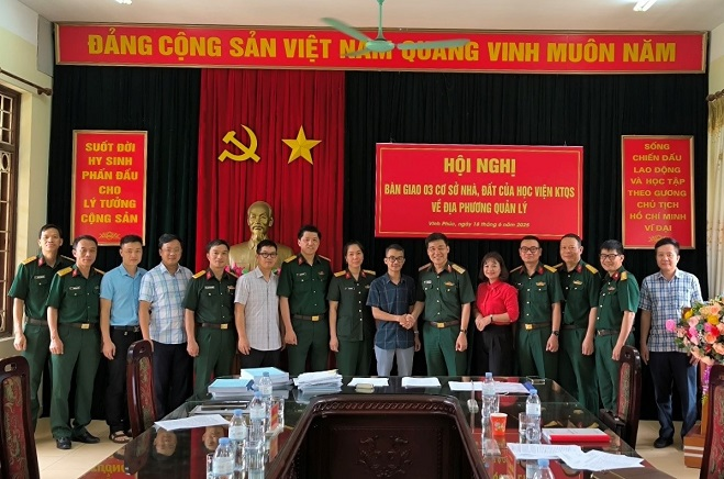 Ngày 18/6/2025, tại Trung tâm Huấn luyện 125 Vĩnh Phúc, Học viện KTQS đã tổ chức Hội nghị bàn giao 03 cơ sở nhà, đất của Học viện trên địa bàn tỉnh Vĩnh Phúc cho địa phương quản lý. Tham dự Hội nghị có Thiếu tướng Lê Anh Tuấn – Phó Giám đốc Học viện; đại diện các cơ quan Phòng Hậu cần – Kỹ thuật, Phòng Chính trị, Văn phòng, Trung tâm Huấn luyện 125 Vĩnh Phúc và đại diện lãnh đạo các sở, ban, ngành của tỉnh Vĩnh Phúc.