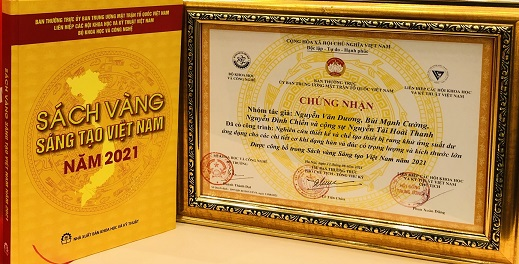 Giấy chứng nhận được công bố trong Sách vàng Sáng tạo Việt Nam của nhóm tác giả thuộc Học viện KTQS