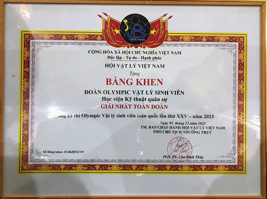 Đội tuyển Olympic Vật lý của Học viện KTQS đã xuất sắc đạt giải Nhất toàn đoàn và 04 giải Nhất, 03 giải Nhì dành cho các cá nhân