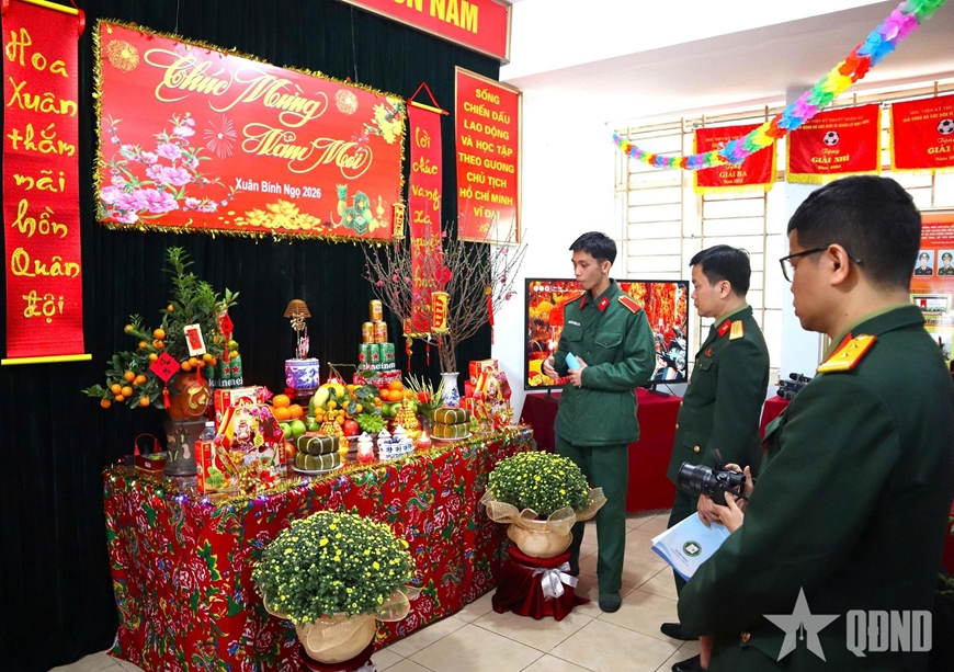 Trong thời gian chuẩn bị đón Tết, các đội thi đã chủ động hoàn thiện, trình bày mâm ngũ quả, trang trí bàn thờ Tổ quốc tạo không gian Tết cổ truyền, đầm ấm, vui tươi. Phần thi bình báo tường được các đơn vị thực hiện đúng chủ đề chào xuân mới, hướng tới không khí vui tươi, đoàn kết trong dịp Tết và thể hiện tình yêu quê hương, đất nước, truyền thống Học viện KTQS.